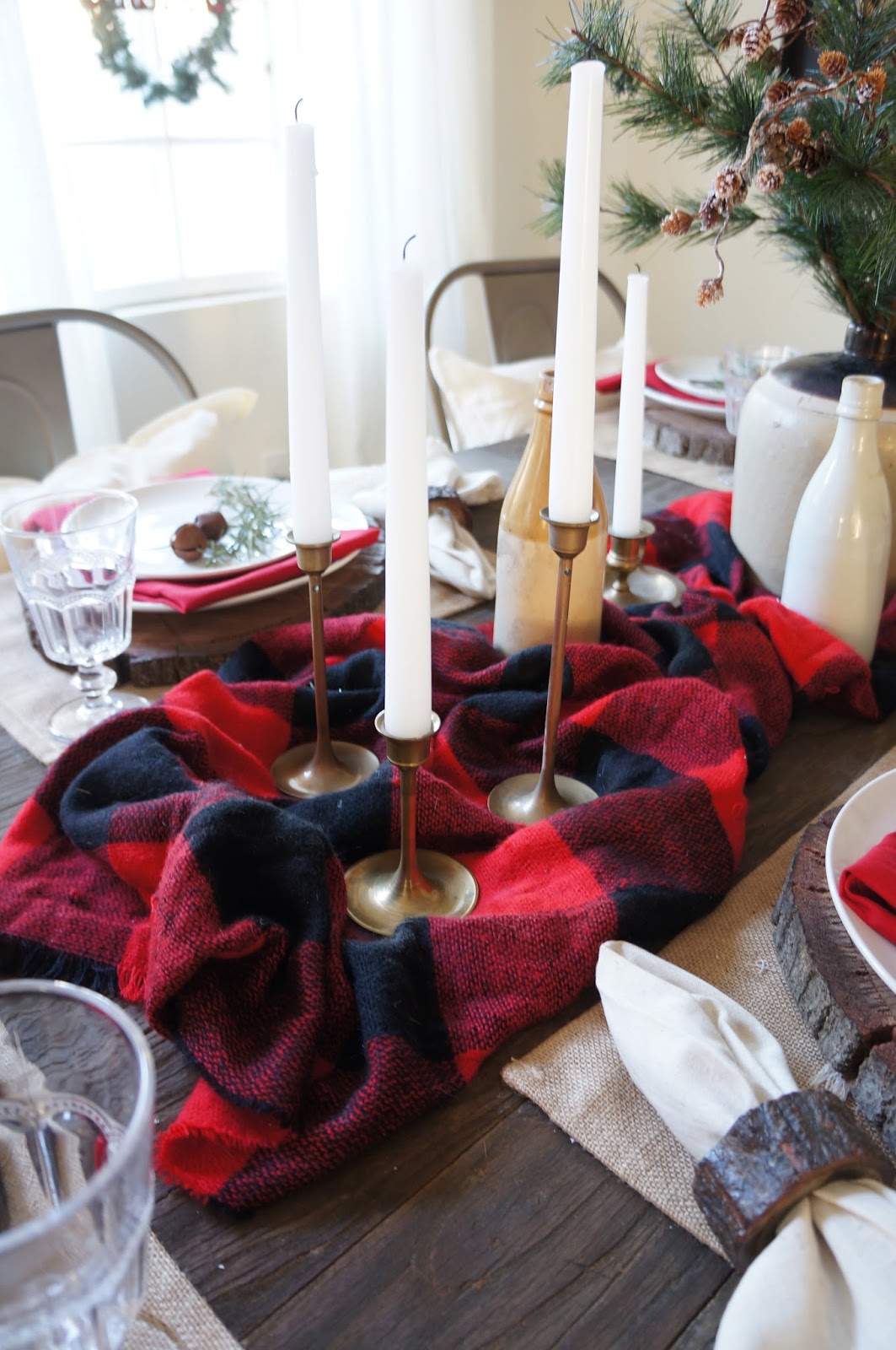 The old stoneware is a great rustic addition. They belonged to my great grandparents and were just passed down to me from my grandma. I am loving how they look on the table. I ordered the brass candlesticks off of Etsy for a great price. It is the exact look I wanted!